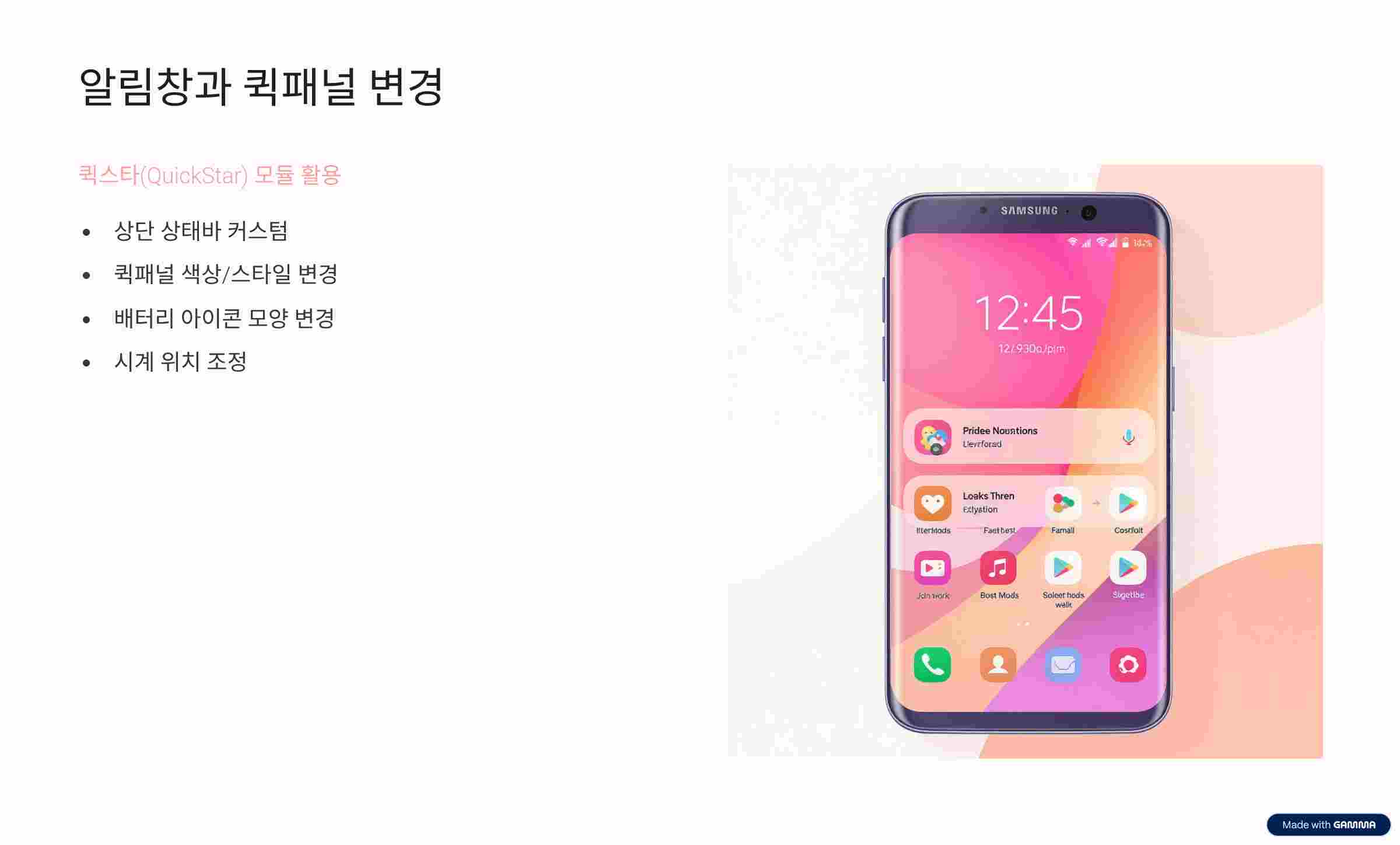 스마트폰을 사용하다 보면 알림 창을 자주 내리게 됩니다. ‘퀵스타(QuickStar)’ 모듈을 사용하면 상단 상태바와 퀵패널을 원하는 색상이나 스타일로 바꿀 수 있습니다. 배터리 아이콘 모양을 변경하거나 시계 위치를 조정하는 것도 가능합니다. 단순히 기능을 넘어서 개인의 취향을 반영할 수 있어 만족도가 높습니다.